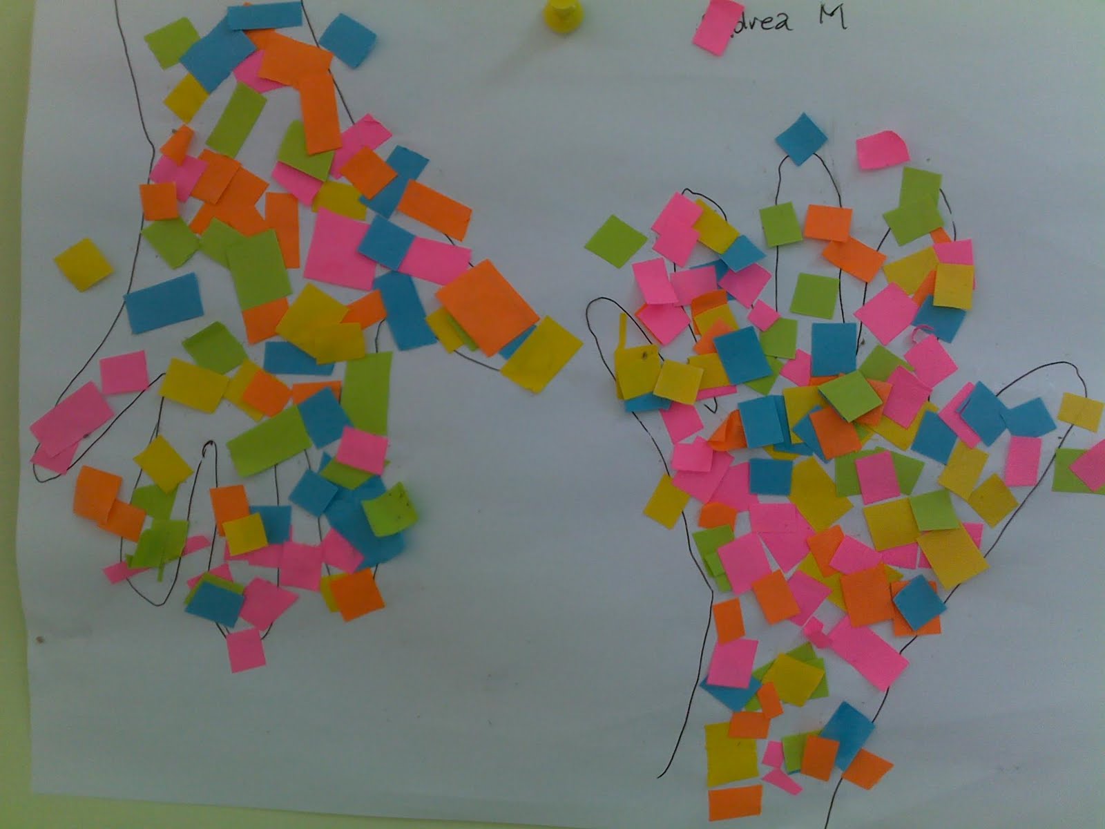 Eighth grade students played with warm, cool and complementary colors exercise in a fun personal way. Below are some of the works they made. Enjoy!